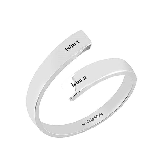 Joint Solid Gold Two Name Ring 14K Rose & White Solid Gold