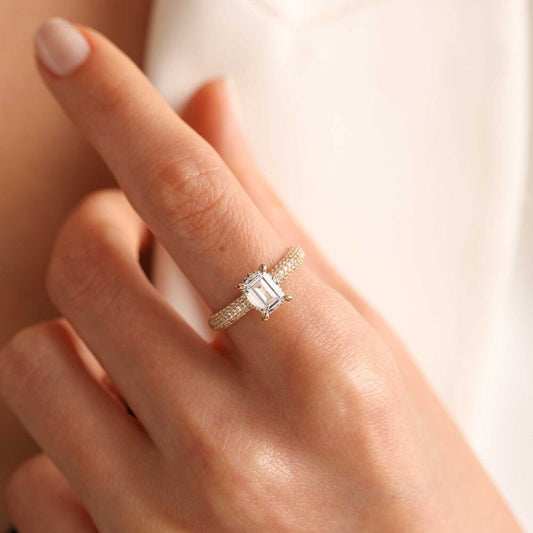 Yellow Solid Gold Baguette Ring Double Arm