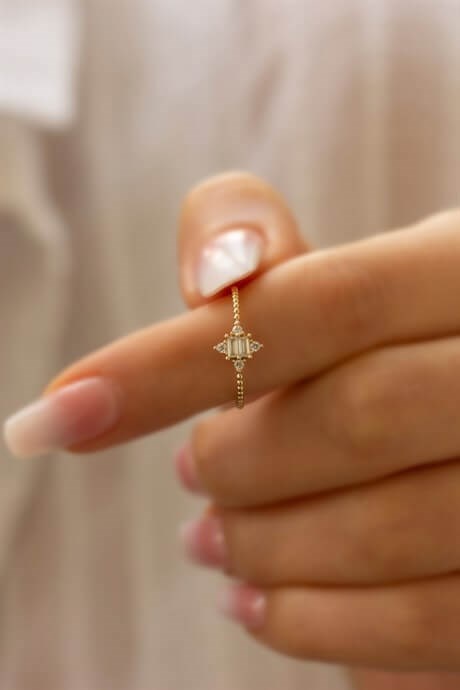 Solid Gold Baguette Gemstone Ring | 14K (585) | 1.38 gr