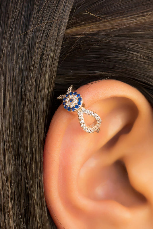 Silver Evil Eye Cartilage Earrings