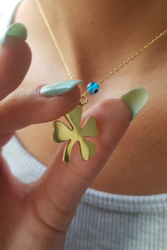 Silver Evil Eye Clover Necklace