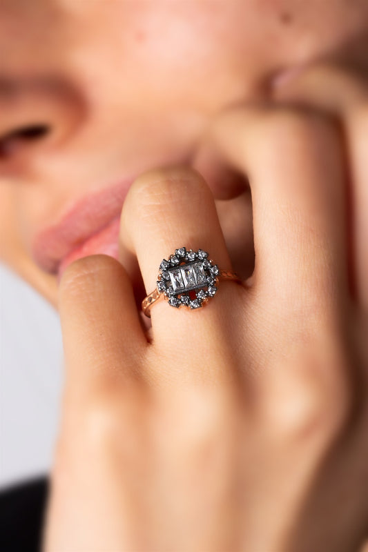 Silver Gemstone Flower Gemstone Necklace Earrings Ring Set