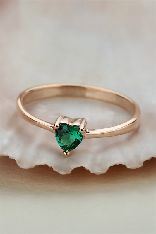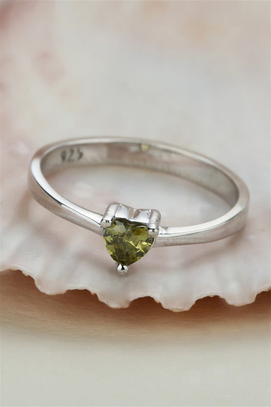 Silver Green Heart Gemstone Ring