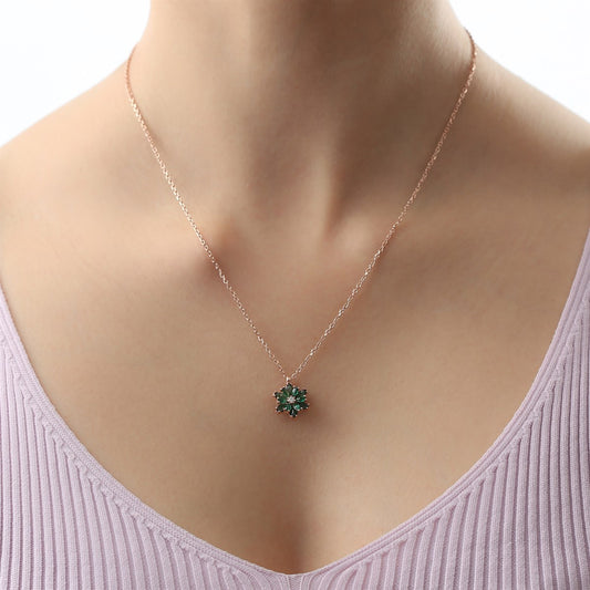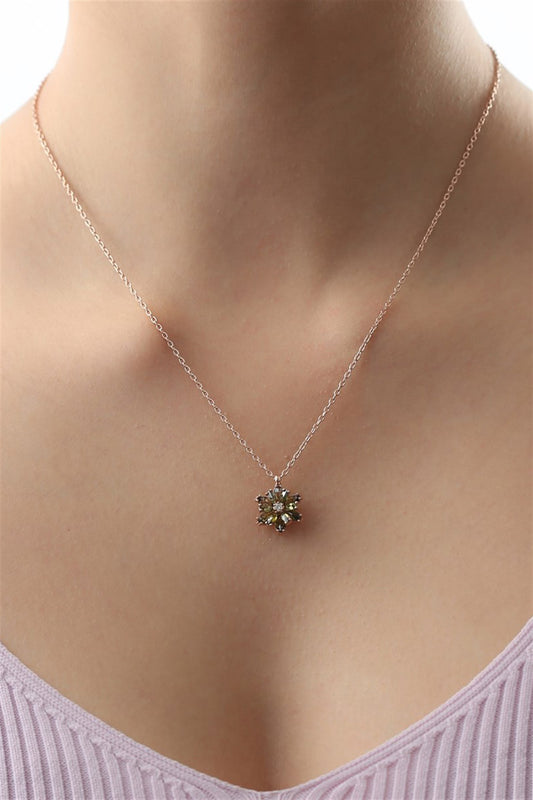 Silver Green Gemstone Lotus Camellia Flower Necklace