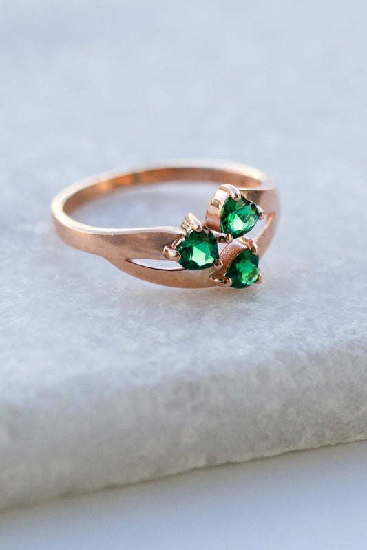 Silver Green Gemstone Three Stoness Ring