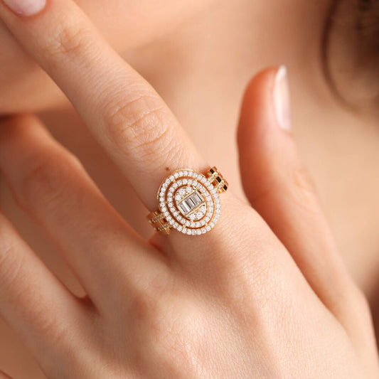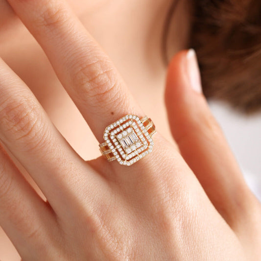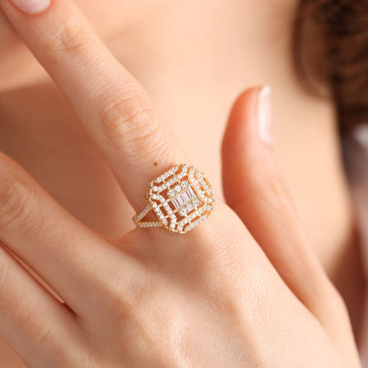 Yellow Solid Gold Baguette Ring Asymmetric Form
