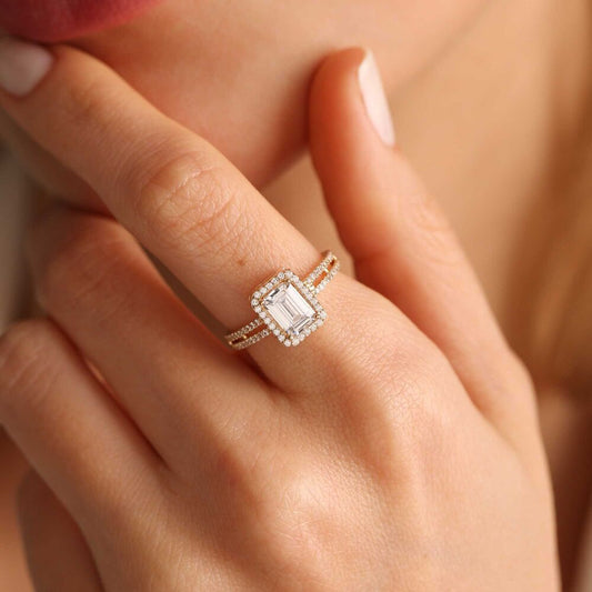 White Solid Gold Solitaire Three Set 14K Solid Gold
