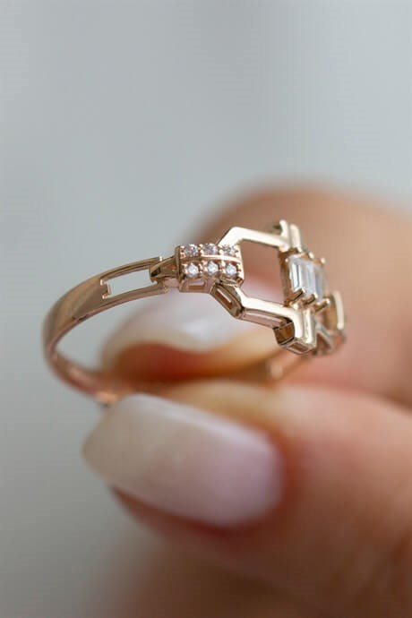 Solid Gold Baguette Gemstone Design Ring | 14K (585) | 1.79 gr
