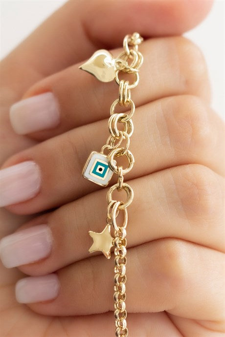 Solid Gold Evil Eye Charm Bracelet | 14K (585) | 6.42 gr