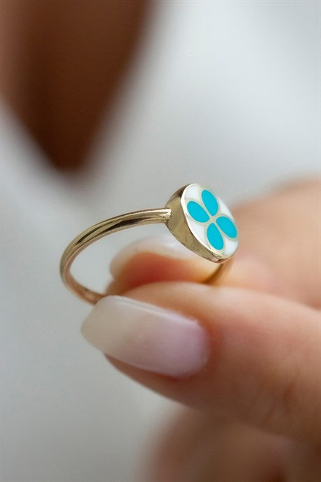 Solid Gold Enameled Clover Ring | 14K (585) | 3.85 gr