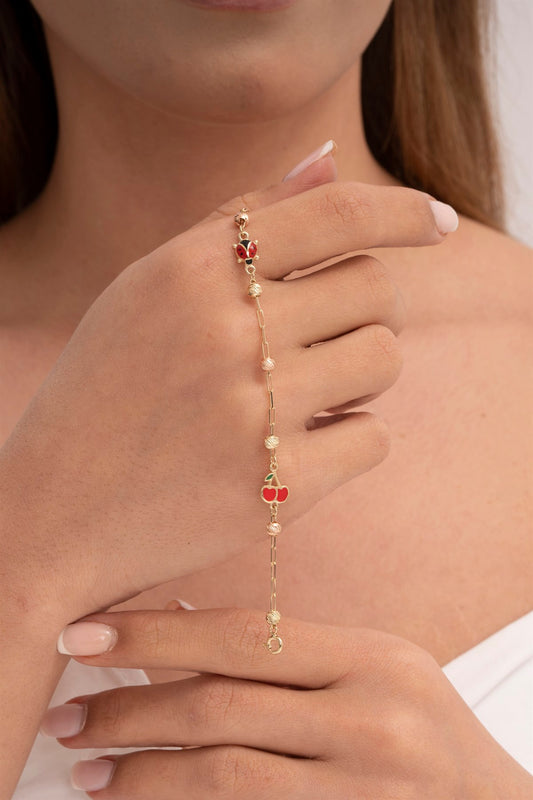 Solid Gold Dorica Beaded Enamel Ladybird And Cherry Baby & Children Bracelet