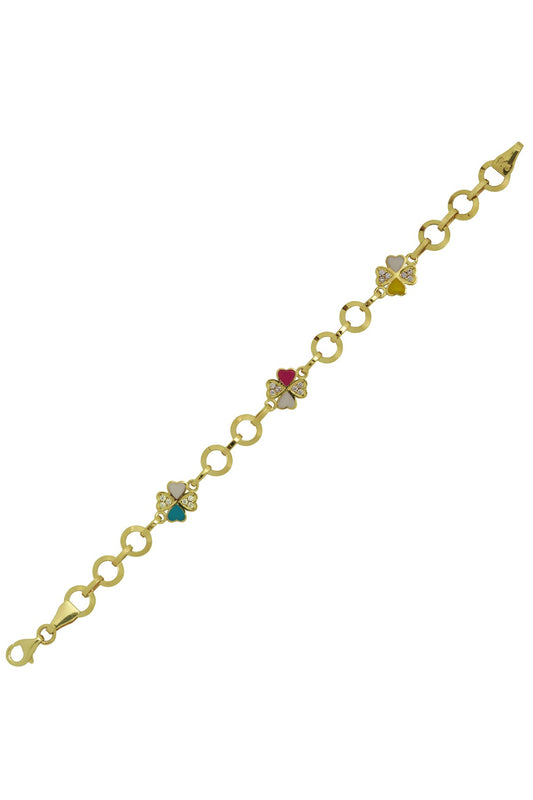 Solid Gold Ring Chain Enamel Clover Baby & Children Bracelet