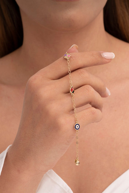 Solid Gold Enamel Evil Eye Ladybird Clover Baby & Children Bracelet