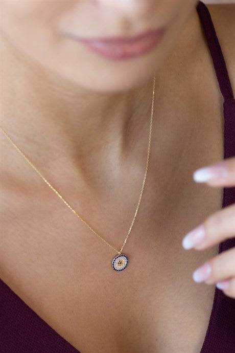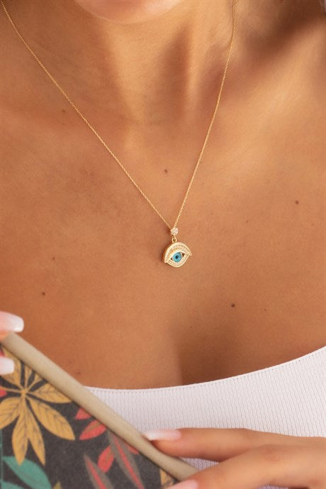Solid Gold Evil Eye Necklace | 8K (333) | 2.24 gr
