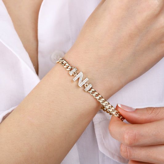 Initial Solid Gold Bracelet 14K Gourmet Chain With Gemstone 5 mm