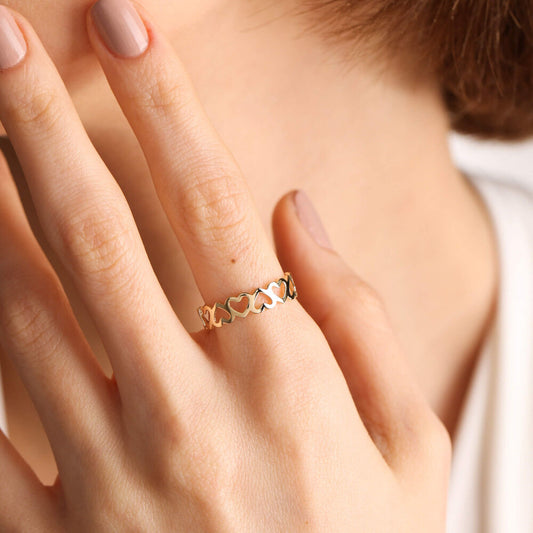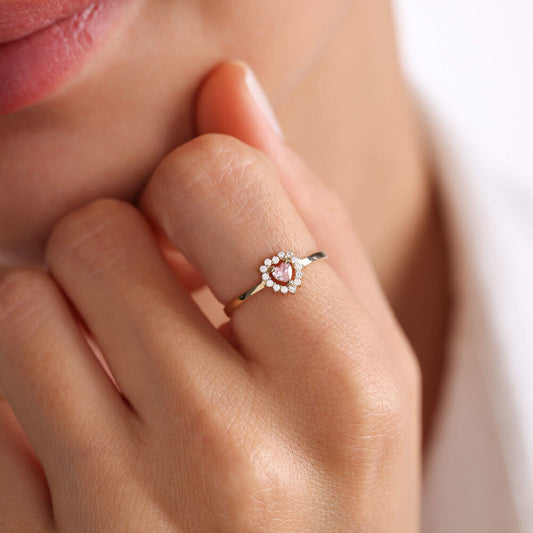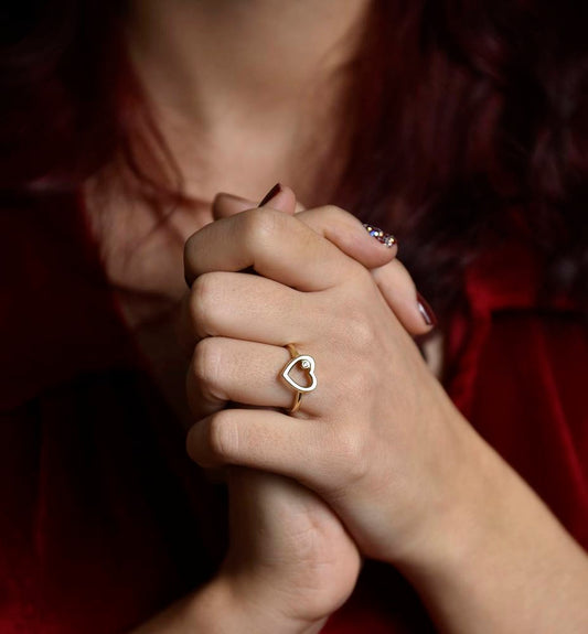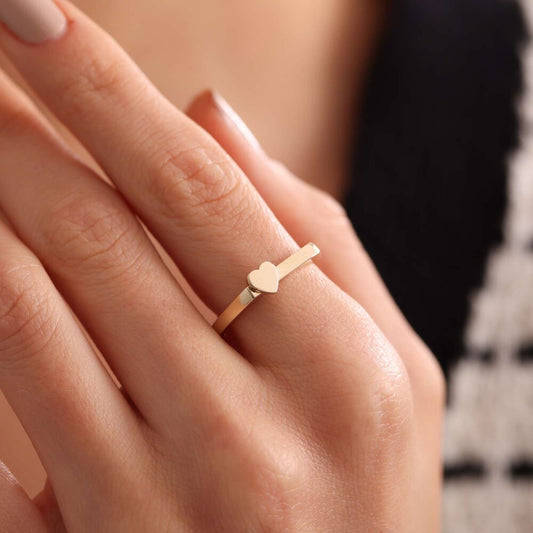 Heart Solid Gold Ring Solitaire ile 14K Solid Gold