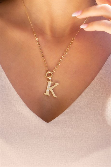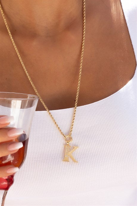 Solid Gold K Initial Necklace | 14K (585) | 6.54 gr