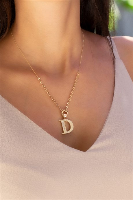 Solid Gold D Initial Necklace | 14K (585) | 6.52 gr