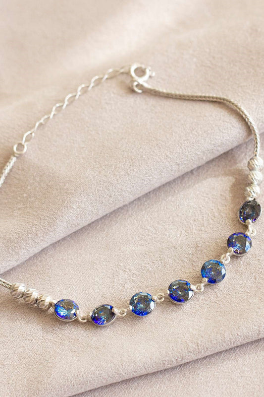 Silver Blue Gemstone Bracelet
