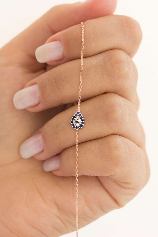 Silver Evil Eye Drop Bracelet