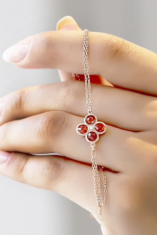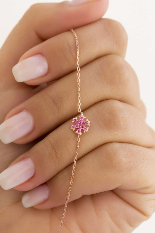 Silver Pink Gemstone Snowflake Bracelet