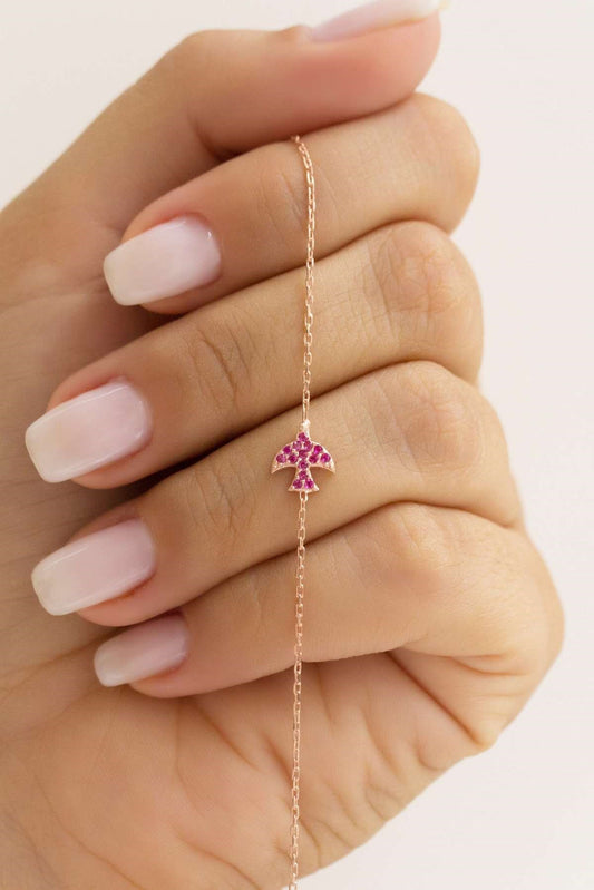 Silver Pink Gemstone Bird Bracelet