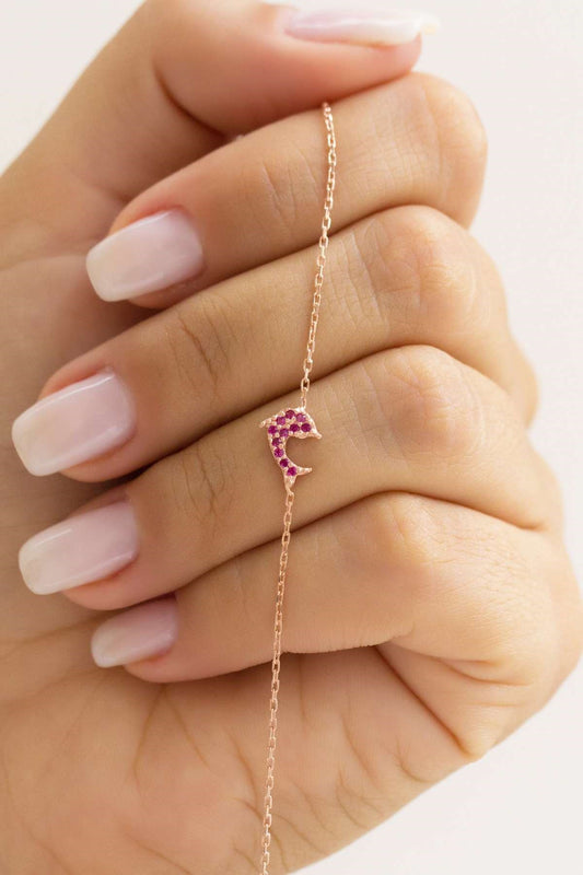 Silver Pink Gemstone Dolphin Bracelet