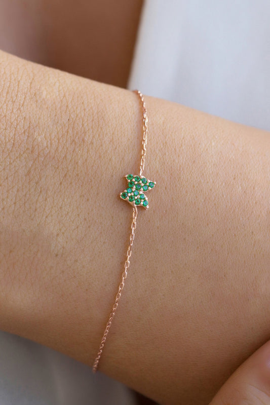 Silver Green Gemstone Butterfly Bracelet