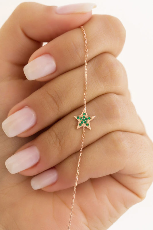 Silver Green Gemstone Star Bracelet