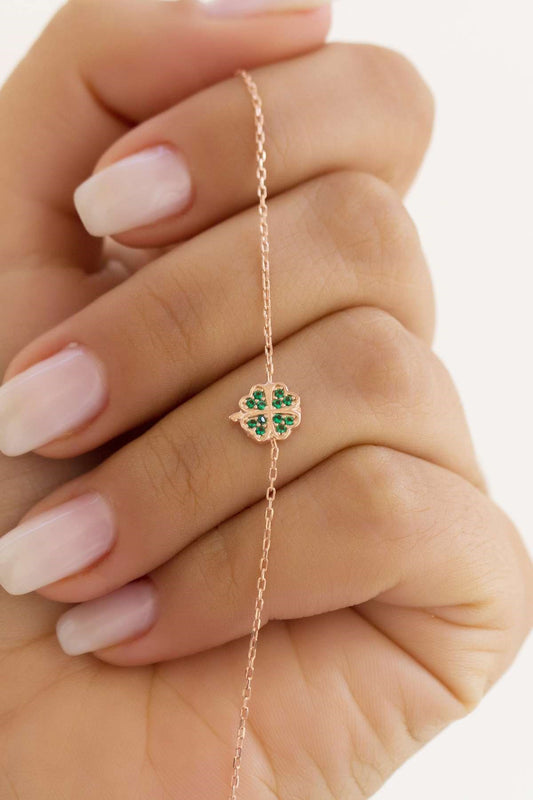 Silver Green Gemstone Clover Bracelet