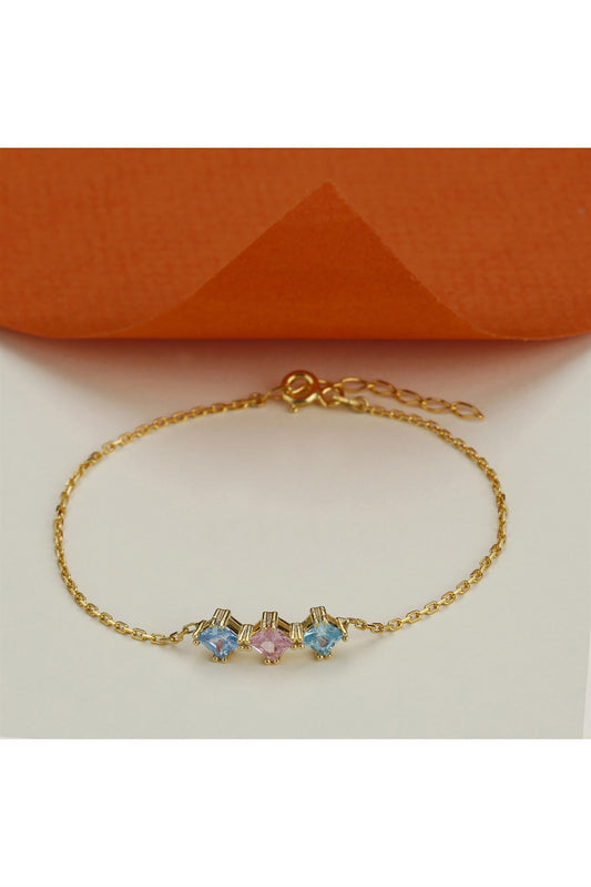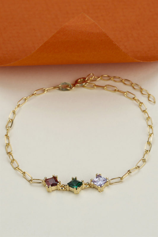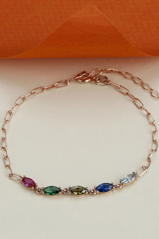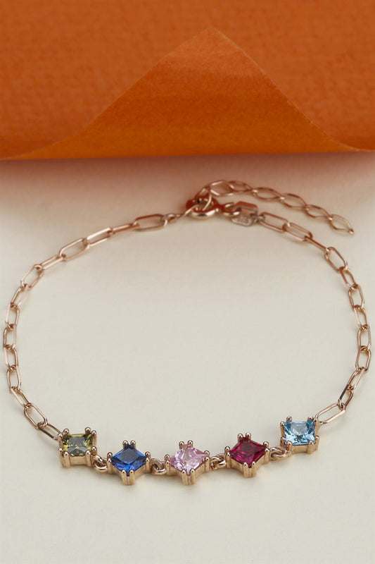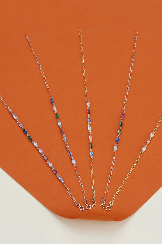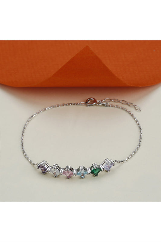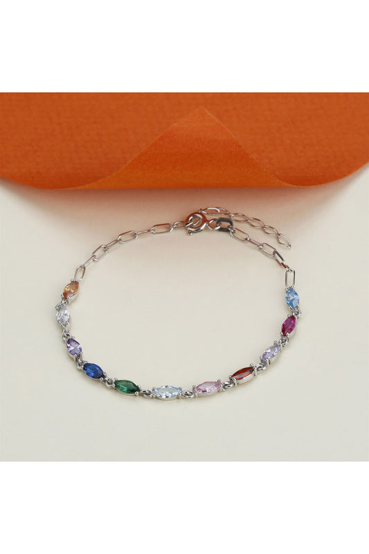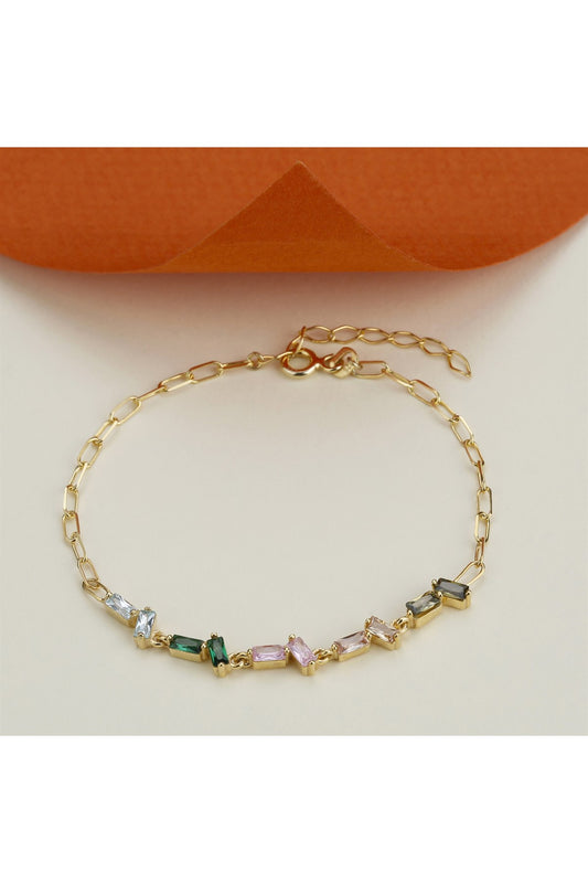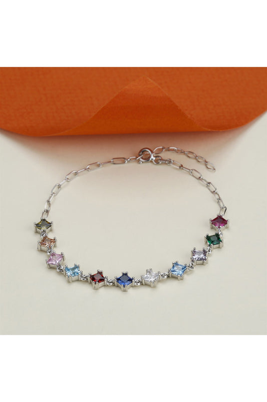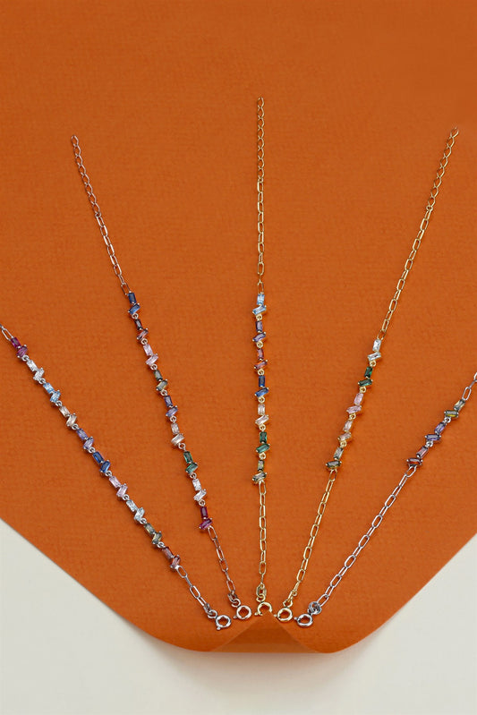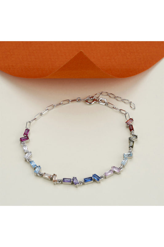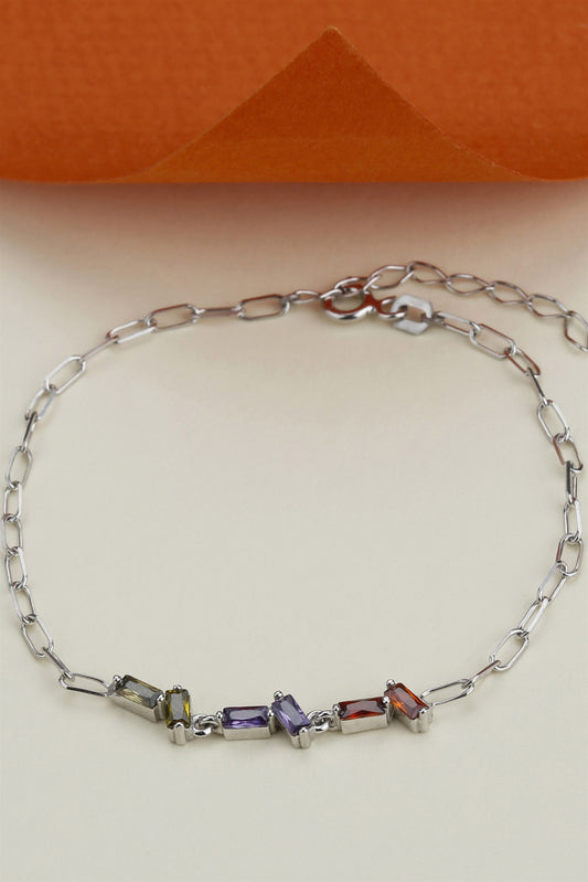 Silver Colorful Baguette Gemstone Chain Bracelet