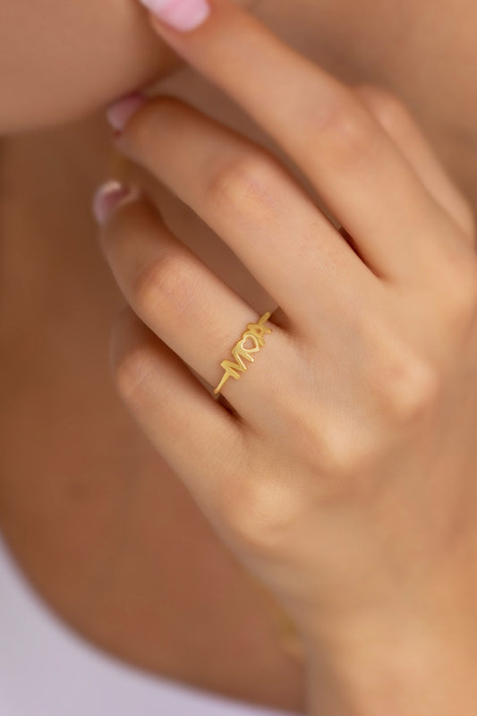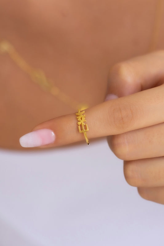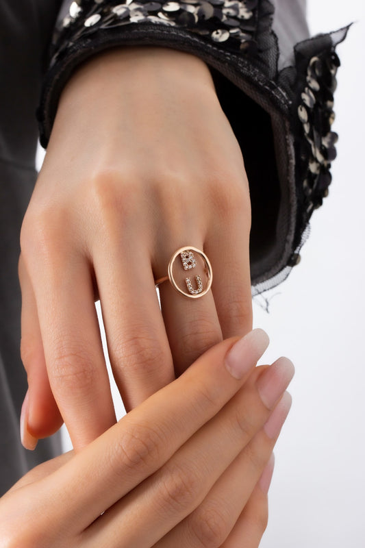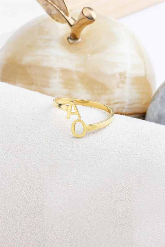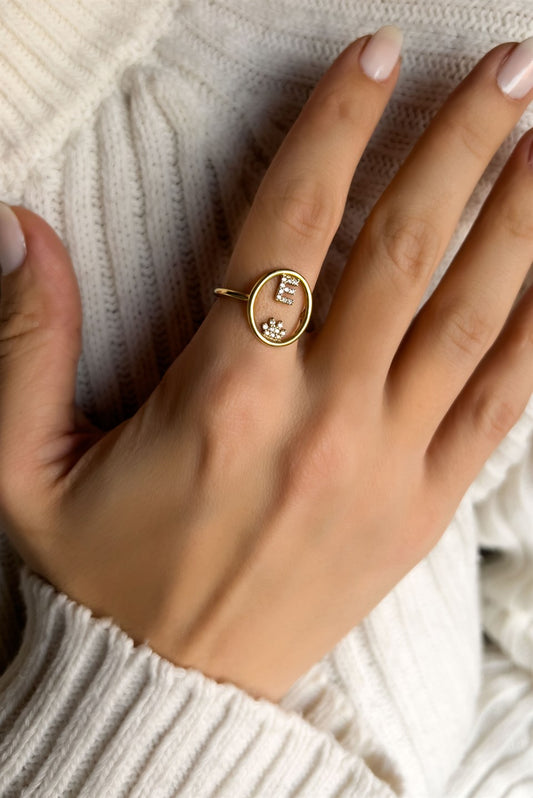 Silver Gemstone Adjustable Oval Form Initial Ring