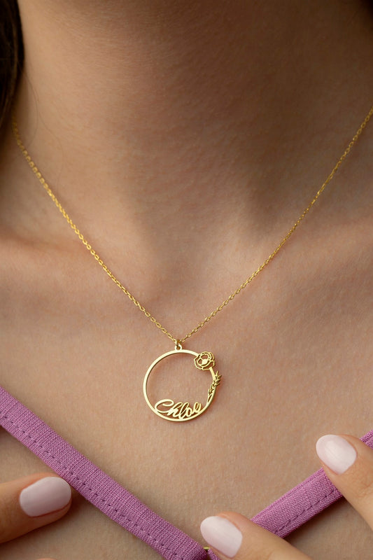 Silver AylaraSpecial Flower Name Necklace