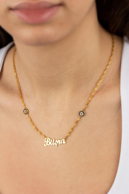 Silver Evil Eye Name Necklace