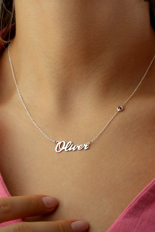 Silver Gemstone Name Necklace
