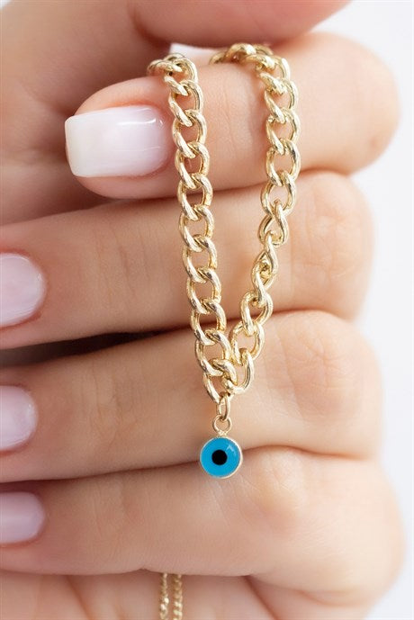Solid Gold Evil Eye Necklace | 14K (585) | 5.77 gr