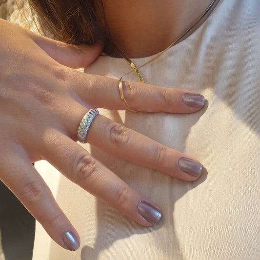 Solid Gold Turquoise Gemstone Enameled Chain Ring | 14K (585) | 1.27 gr