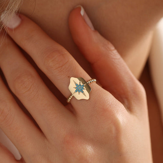 Solid Gold Turquoise Gemstone Star Ring | 14K (585) | 1.79 gr