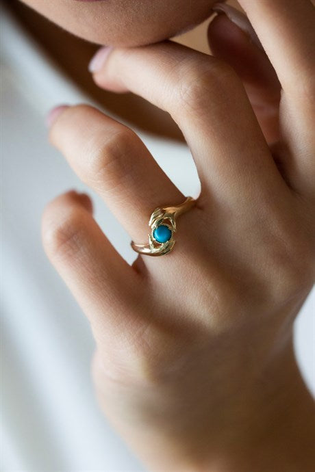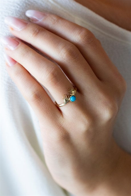 Solid Gold Turquoise Gemstone Hugging Hands Ring | 14K (585) | 1.39 gr