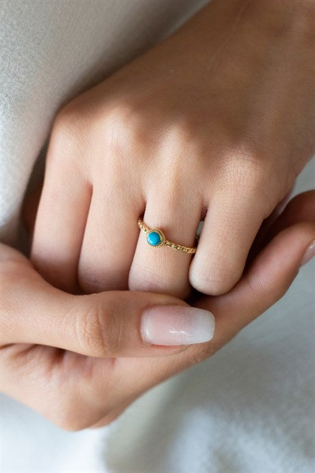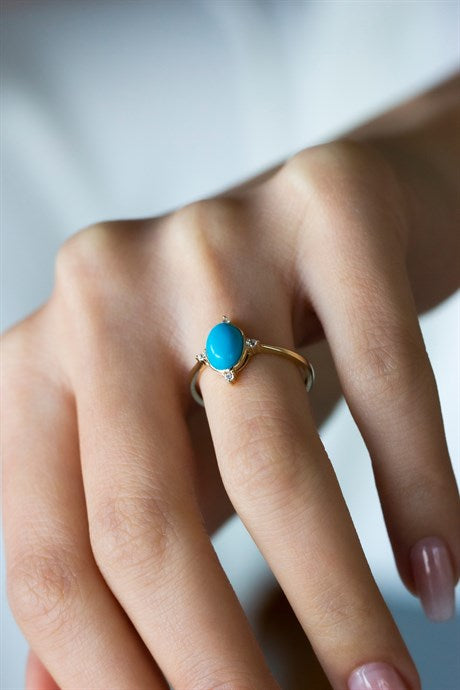 Solid Gold Turquoise Gemstone Ring | 14K (585) | 1.25 gr