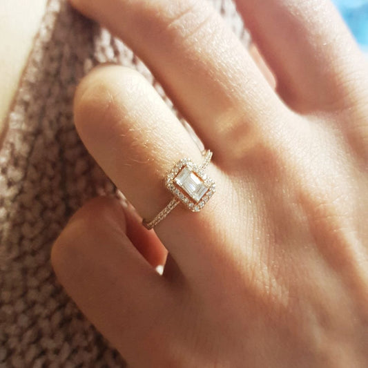 White Solid Gold Solitaire Ring Baguette With Gemstone