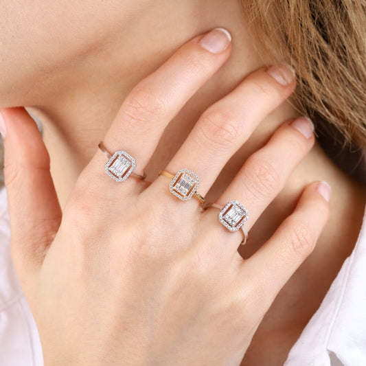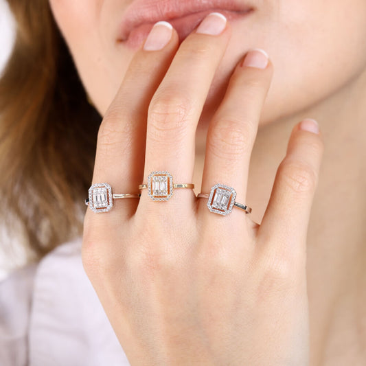 14K Yellow Solid Gold Baguette Ring Claris Duke