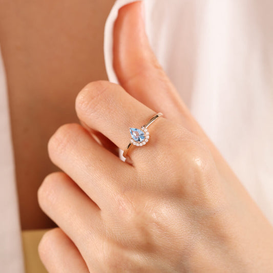 14K Solid Gold Aqua Marine Solid Gold Ring