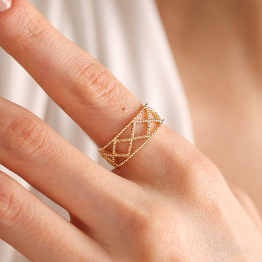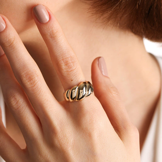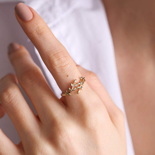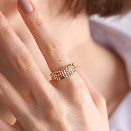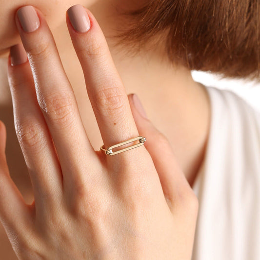 Horseshoe With Gemstone Solid Gold Ring 14K Minimal