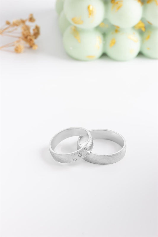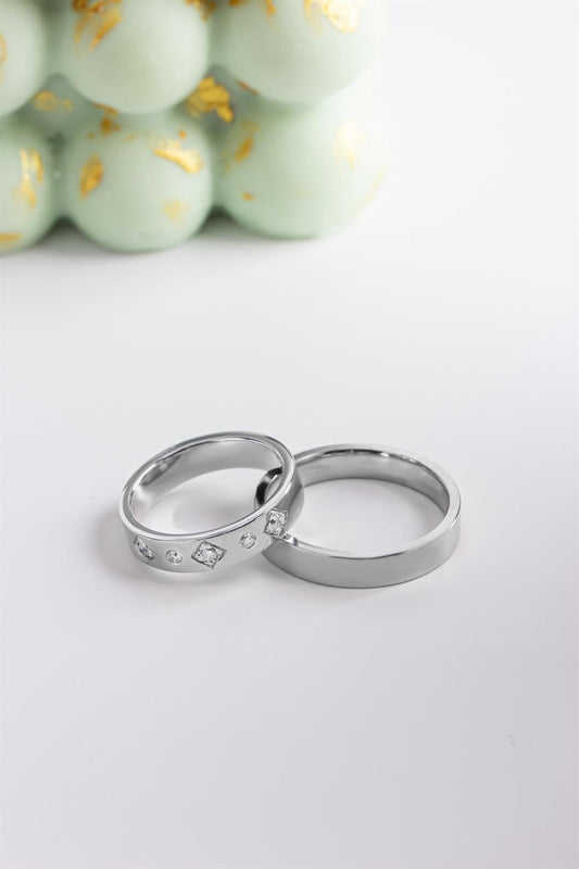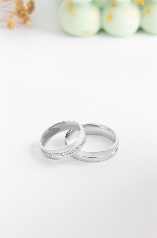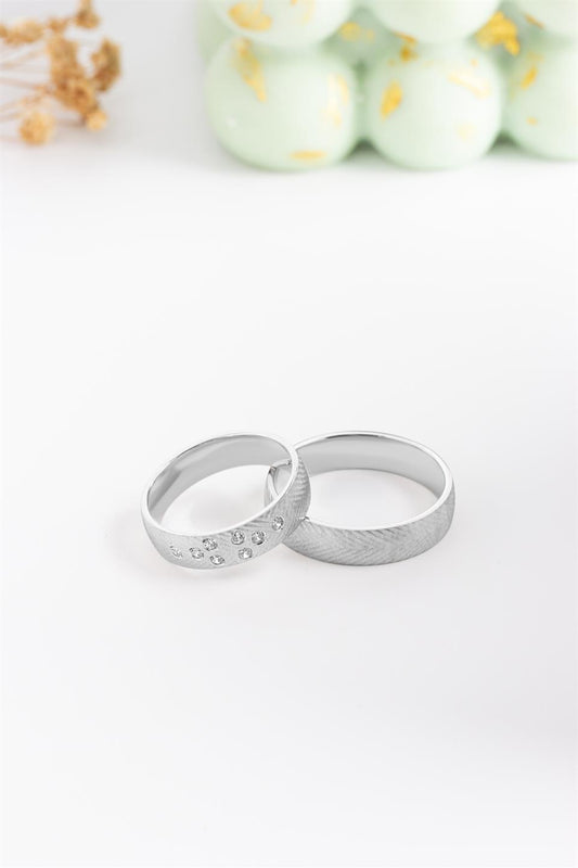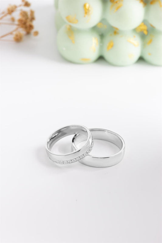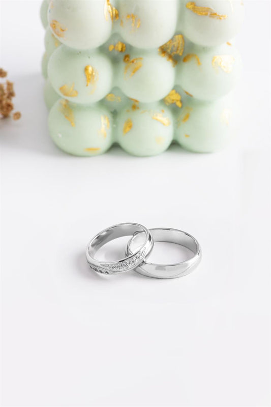 Anillo de bodas de plata con piedras preciosas delicadas de 5 mm