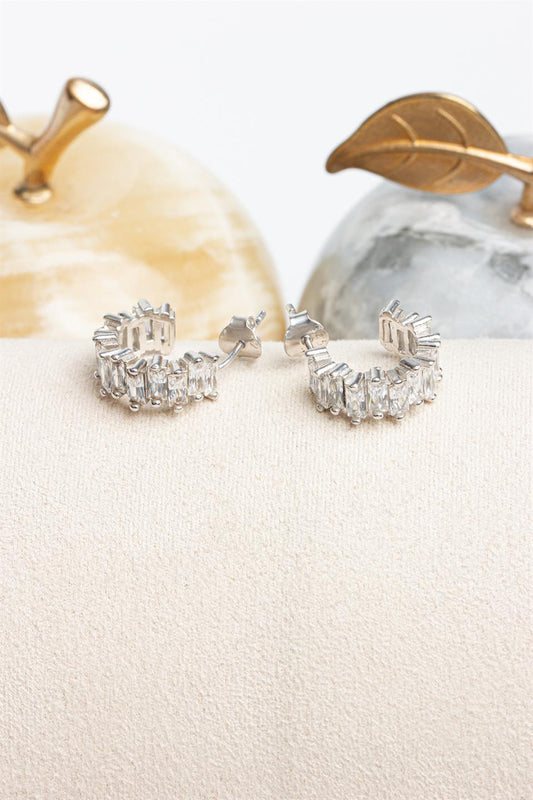 Conjunto de anillo, pendientes y collar con piedras preciosas de baguette de plata