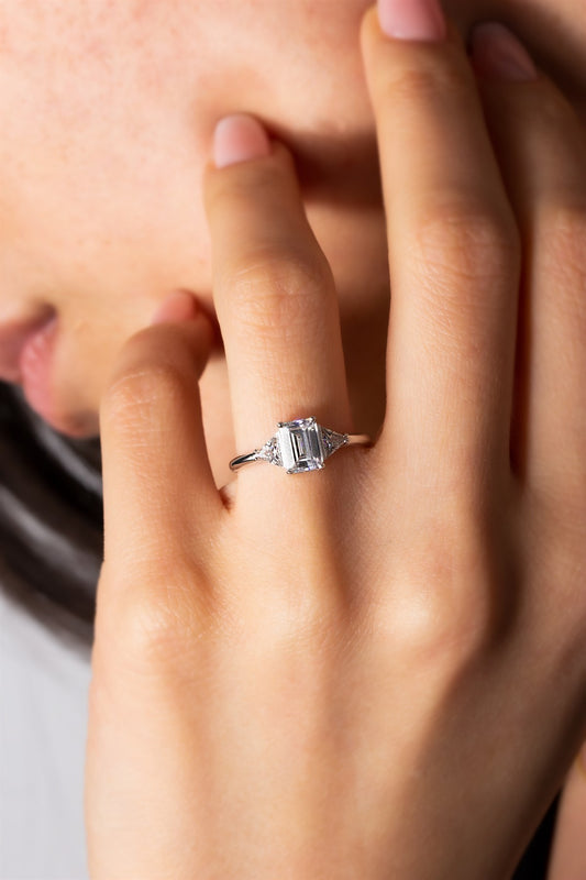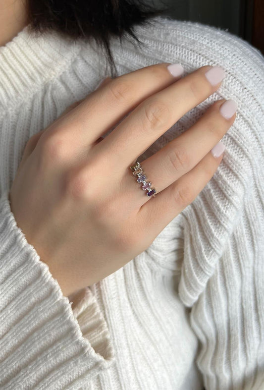 Anillo de piedras preciosas de plata con piedras preciosas baguette