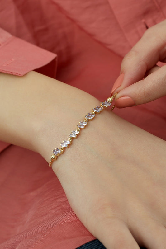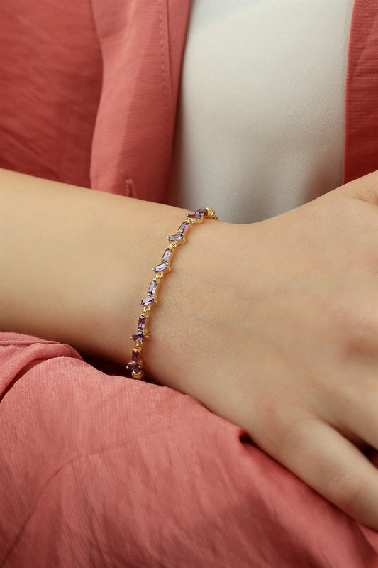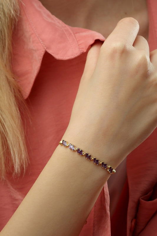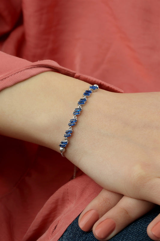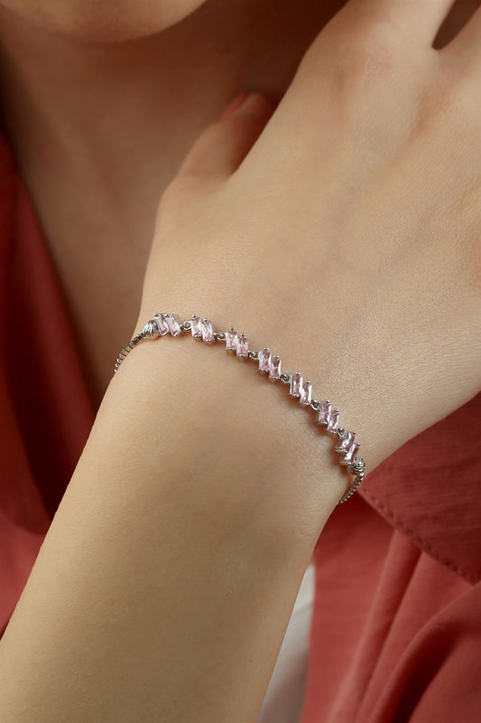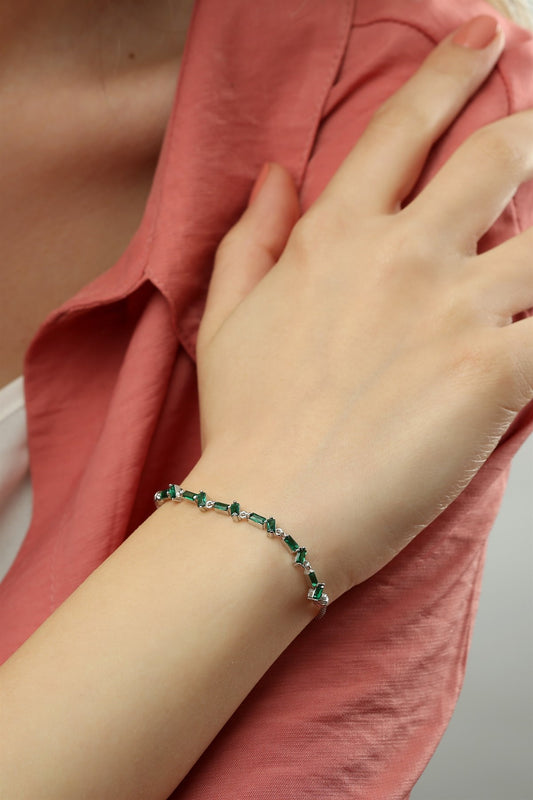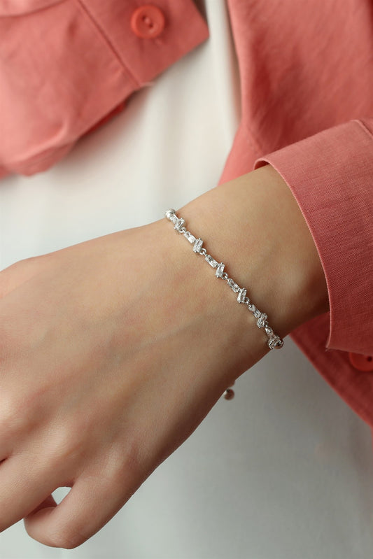 Pulsera de plata con elevador de vías fluviales y piedras preciosas de baguette