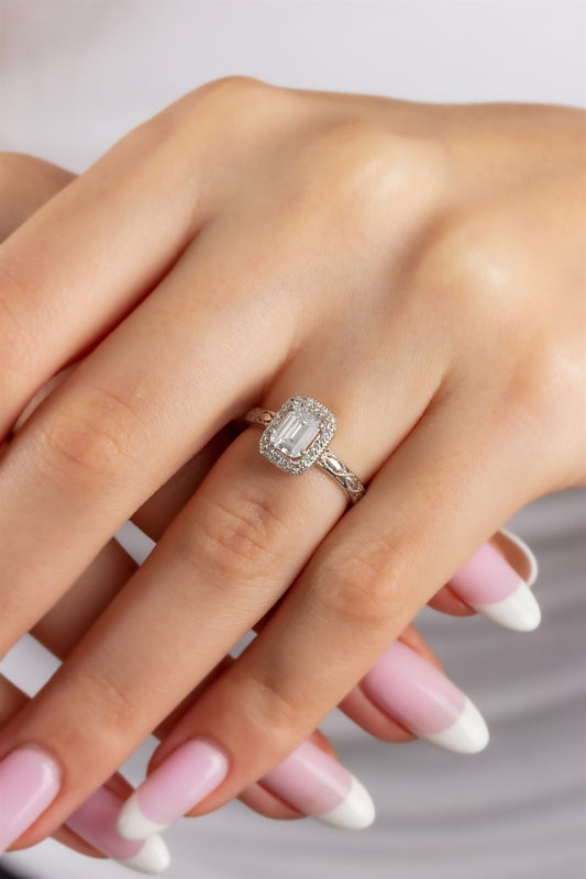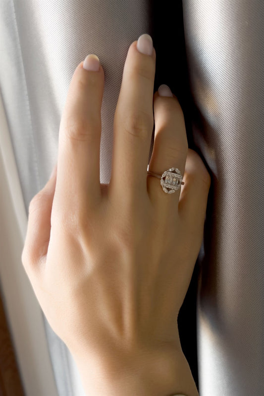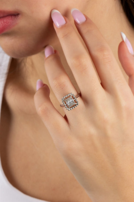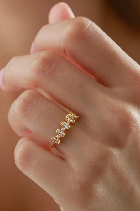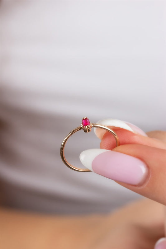 Anillo minimalista de piedras preciosas de rubí baguette de plata