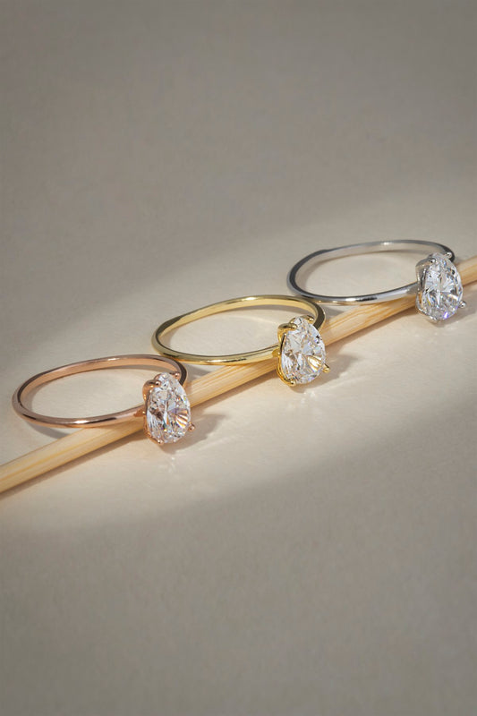 Anillo de piedras preciosas en forma de gota de oro macizo
